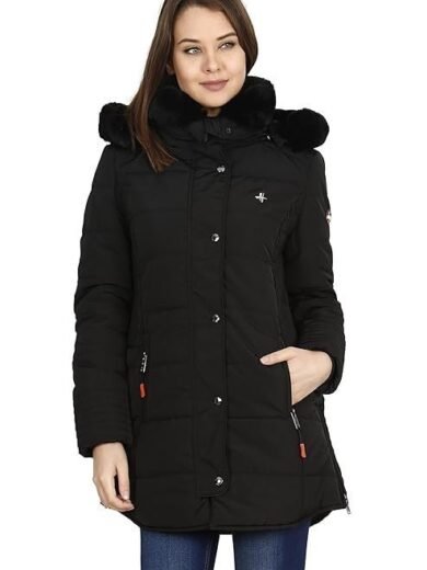 Women's Nylon Jacket Water Proof Full-Sleeved Winter Jacket with Hood For Minus Degree