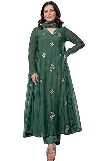 Women's Designer Chinon Silk Sharara Suit Set, Embroidery Kurti with Sharara and Dupatta 18141 (ST06)