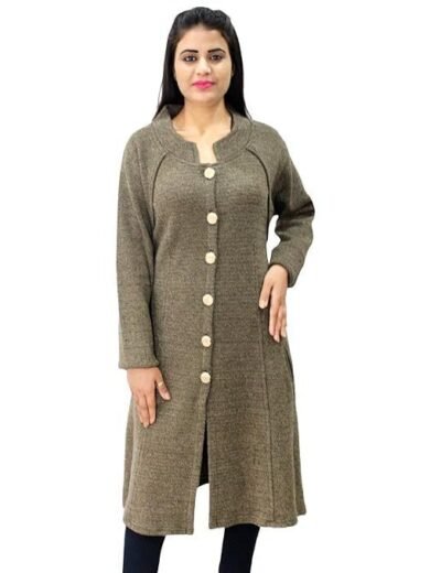 Women's Woollen Button A-Line Long Coat with Pockets