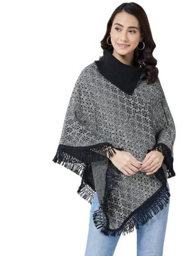 Wool Blend Striped Poncho for Women for Winter