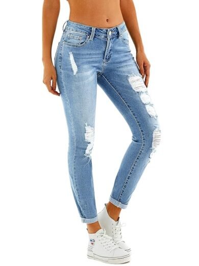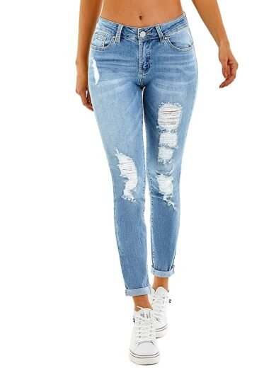 Women's Ripped Skinny Jeans Stretch Boyfriend Trendy Jean Women Straight Distressed Jeans