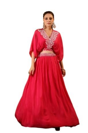 Womens Georgette Embroidered Flared Gown Skirt With Top Style | Soft Lightweight Fabric Floor-Length Dress for Festivals Parties Weddings & Special Occasions | Stylish Ethnic...