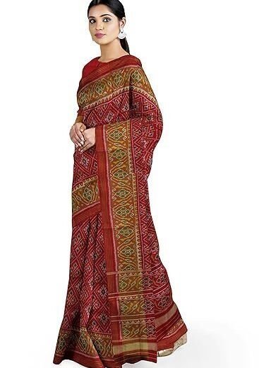 Dark Red Shaded Handloom Single Ikat Silk Patola Saree (GGCSIKS124)