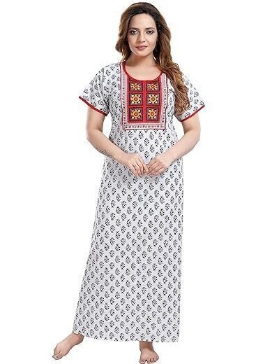 Cotton Nighty for Women | white color Printed Night Gown for Women with Pocket | Maxi Nighty, Comfortable Sleepwear for Daily Use