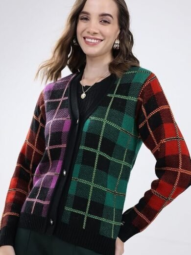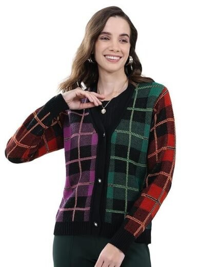 Women's Regular Fit Cardigan | Self Design Pattern | Button Closure with Full Sleeve V Neck Winter Cardigan for Womens