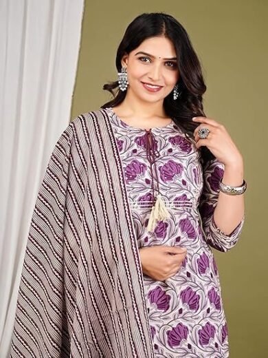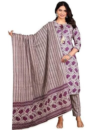 Pure Cotton Printed Straight Kurta with Pant & Dupatta Suit