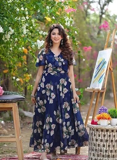 Women's Georgette Digital Floral Printed Gown Dress for Women (Dress2 35)