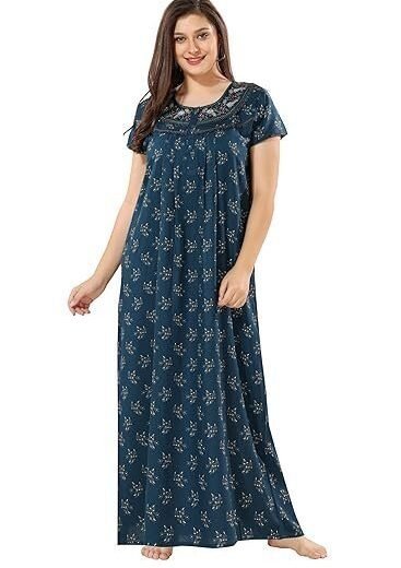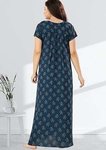 Cotton Nighty for Women | blue Printed Night Gown for Women with Pocket | Maxi Nighty, Comfortable Sleepwear for Daily Use