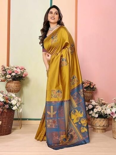 Women's Kanjivaram Banarasi Soft Silk Saree With Unstitched Blouse Piece (Silk Box Flower)