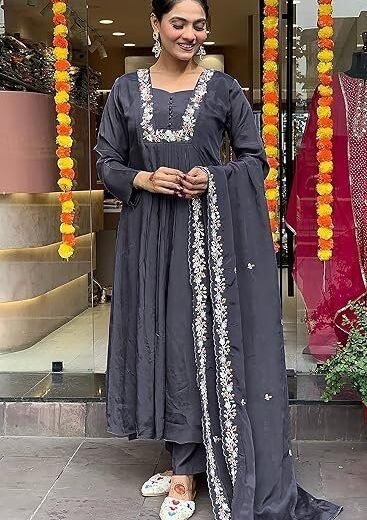 Women?s Satin Night Dress | Floral Printed Satin Fabric Long Nighty | Soft Sleepwear for Women (Round Design Nighty)