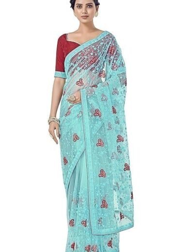 Women's Net Embroidered Work Saree With Blouse Piece