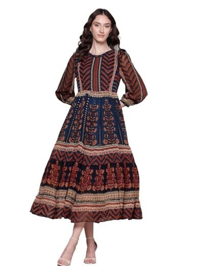 Cotton Relaxed Fit Anarkali Bandhej Printed Kurta