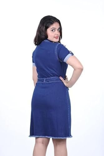 Women's Denim A-Line Mini Dress Button Down Short Sleeve Casual Summer Shirt Dress
