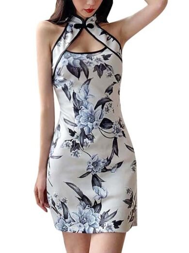 Women's Lace Floral Cheongsam Costume Vintage Short Sleeve Side Slit Midi Dress Fashion Chinese Tradtional Qipao Gowns