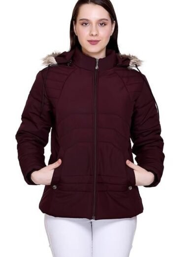 Women's Quilted Nylon Winter Jacket – Full Sleeve Hooded Puffer with Zipper Pockets