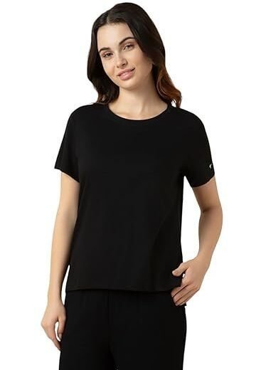 WOMEN BLACK ROUND NECK RELAX FIT LOUNGE T SHIRT