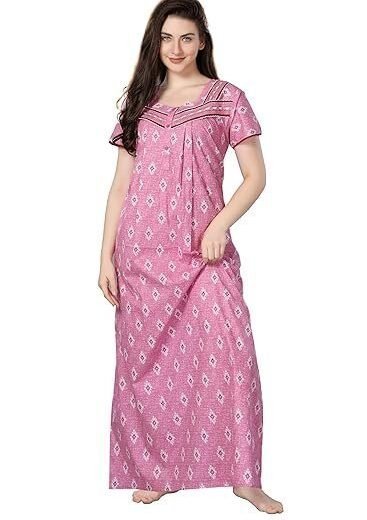 Cotton Nighty for Women | pink Printed Night Gown for Women with Pocket | Maxi Nighty, Comfortable Sleepwear for Daily Use