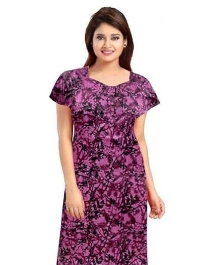 Cotton Nighty Full Length for Women, Printed Night Dress for Women- Free Size