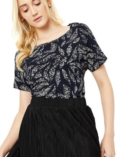 Women Cotton Regular Fit Abstract Printed T-Shirt