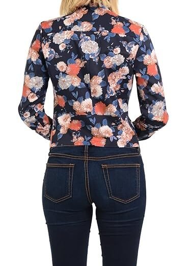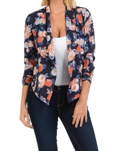 Womens Floral Casual Lightweight 3/4 Sleeve Fitted Open Blazer