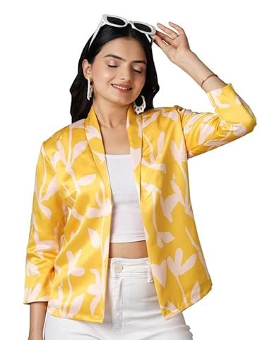 Your Style with Versatile Yellow & Cream Charmeuse Satin Blazer | Shawl Collar, Full Sleeves, Regular Fit, Versatile Stain Jacket for Everyday Wear & Special Occasions