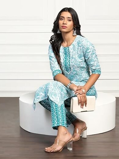 Sleeveless Floral Printed Kurta Set for Women | Summer Cotton Blend Kurta Pant Set | Elegant Ethnic Wear for Casual & Festive Outfits