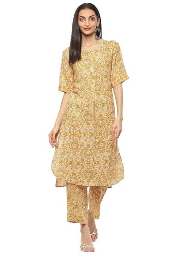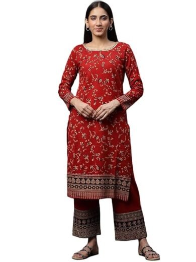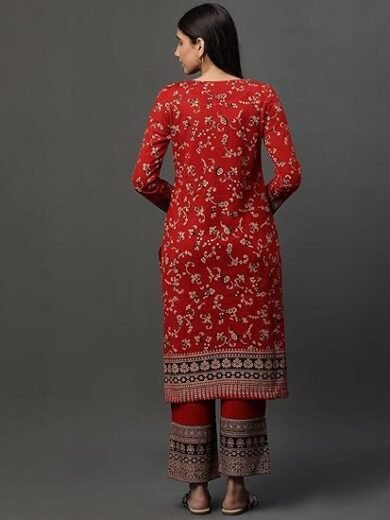 Women Rayon Viscose Regular Fit Printed Straight Kurta with Pant