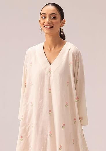 Pure Cotton Jamdani Choga Kurta Pant Set for Women | Flowy A-Line Kurta with Loose Fit Elasticated Drawstring Pants | Ethnic