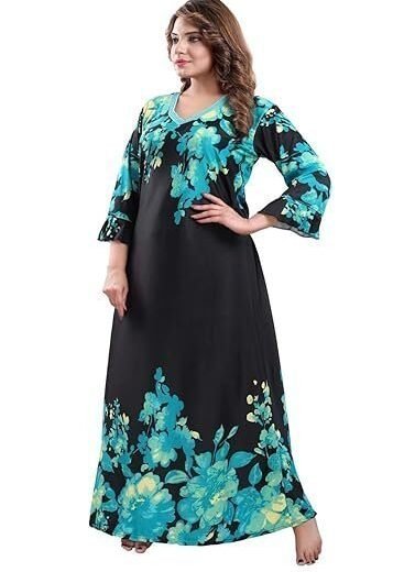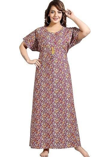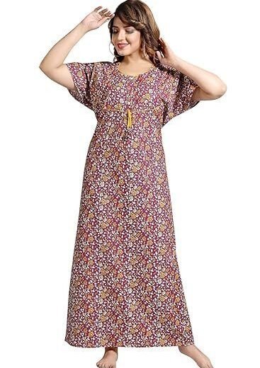 Nighty for Women Cotton Printed Maxi Gown Ankle Length Nighty Night Dress Gown for Women Maxi - Free Size