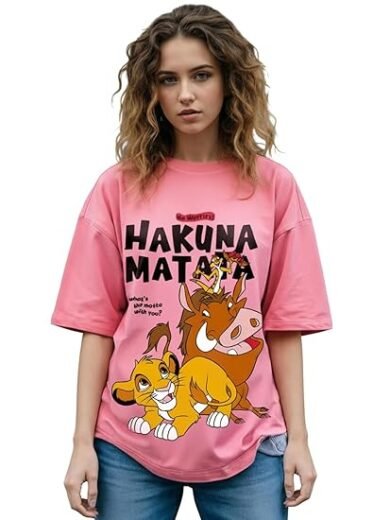 Disney Merchandise Hakuna Matata Women's 100% Cotton Graphic Print Oversized Fit Round Neck T-Shirt