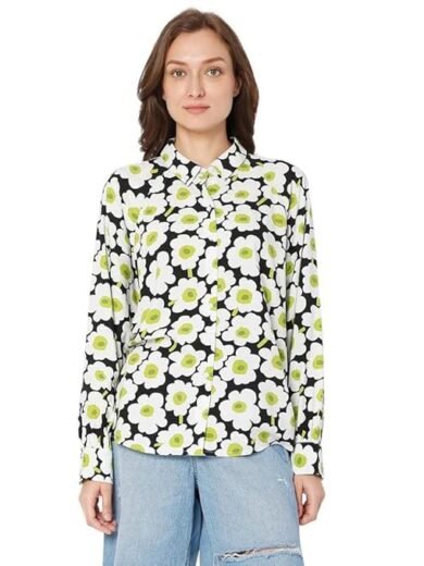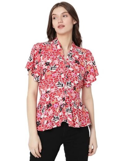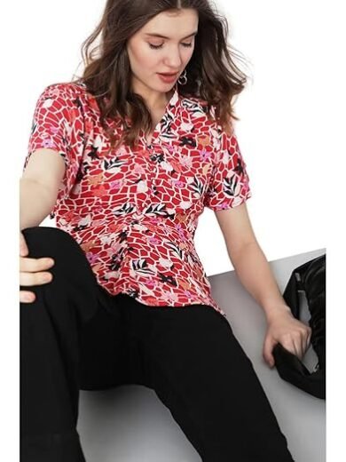 Printed Viscose Blend Round Neck Womens Casual Shirt