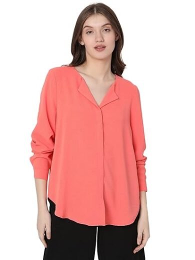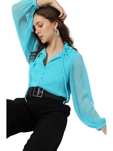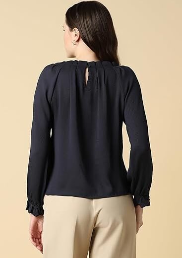 Women Polyester Regular Fit Full Sleeve Solid Closed Neck Formal Top