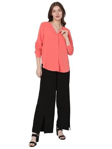 Women Polyester Regular Fit Full Sleeve Solid Button Up Formal Top