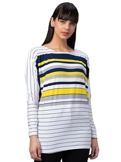Women Polyester Regular Fit Printed V-Neck Top|Long Sleeves