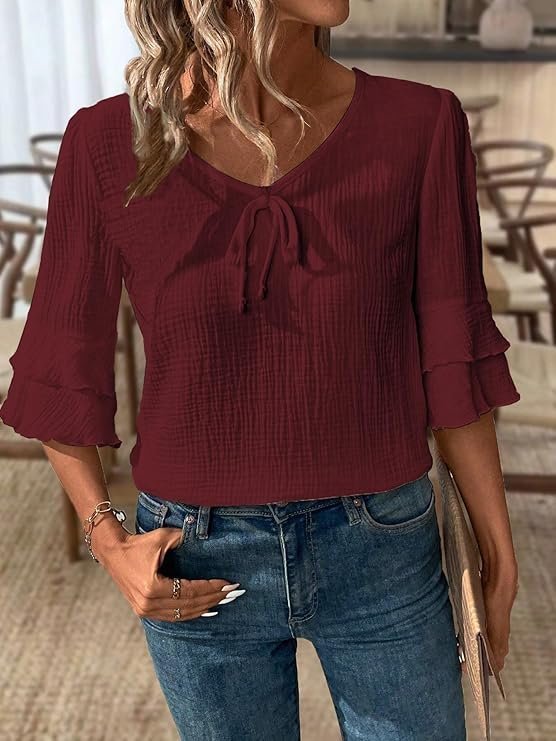 - Elegant Boho-Chic Design ? Features stylish ruffle sleeves and a delicate tie-front detail for a feminine touch.