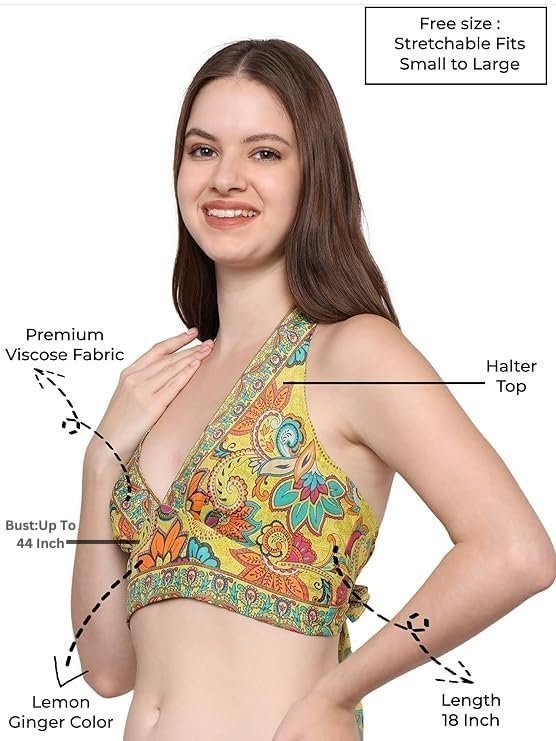 Halter Neck Wrap Top|top for Women|Backless Tops for Women|Halter Neck Tops|Adjustable wrap Waist|Boho Beach Border Print|Easily fits S-M|Bust30-36Inch|LengthUpTo 18Inch