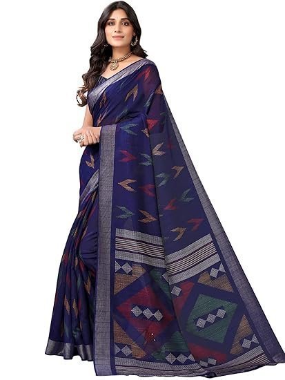 - Colour:: Saree Color: Dark Blue | Blouse Color: Dark Blue