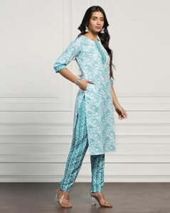 - Kurta and Bottom Fabric: Cotton Blend | Kurta Set Color :- Aqua