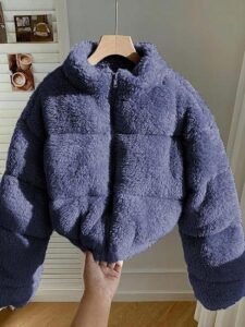 - A cropped denim jacket with fleece lining, stylish winter design, durable stitching and comfortable structure ideal for modern women’s seasonal fashion.