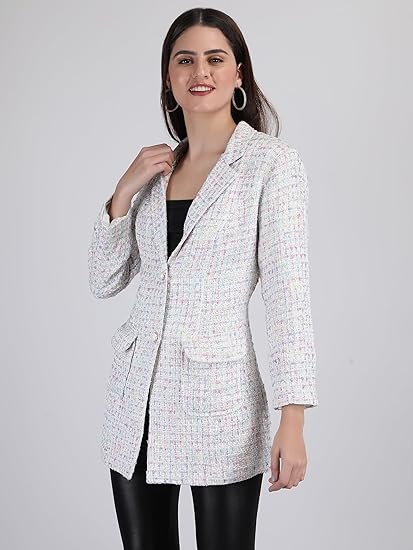 • Match: Wearing our tweed blazers with t-shirt, button down shirts, blouse, camisole, tank top or shorts, jeans, pants, heels, sandals for a chic look for making a cool look.