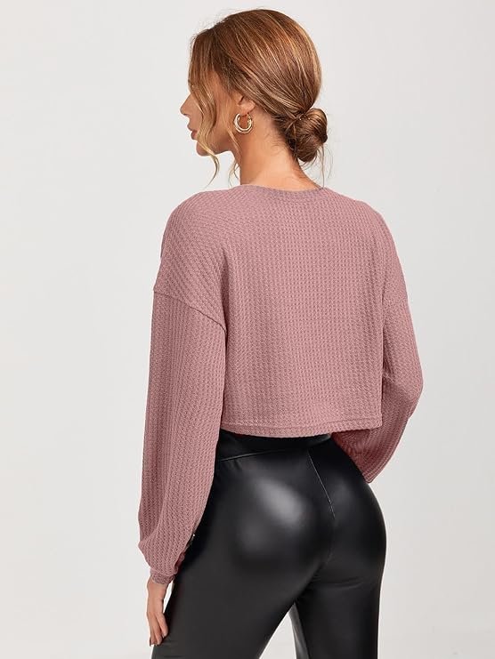Womens Waffle Long Sleeve 2026 Fall Fashion V Neck Basics Crop Tops Slim Fitted T Shirts Going Out Crop top for Women Stylish Western Tops
