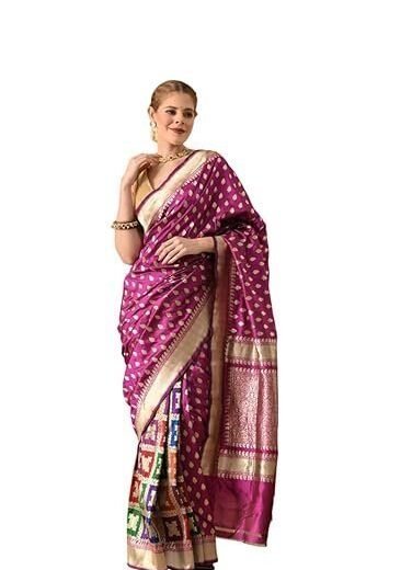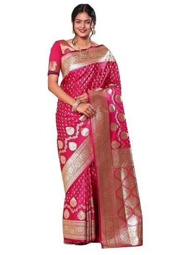 Banarasi Silk Gold Zari Saree-6.3 Mtr(Dark Pink;Golden)