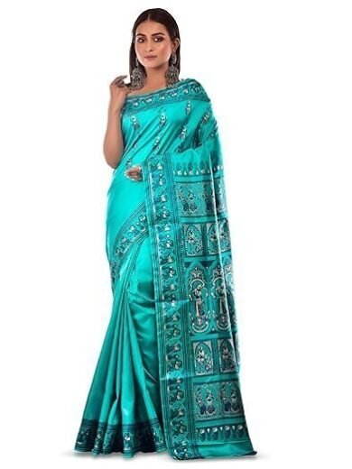 Bishnupuri Silk Meenakari Baluchari Swarnachari Bengal Saree Sea Green