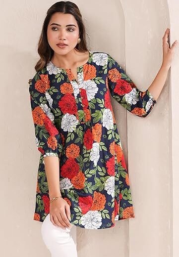 Women's Pure Cotton Floral Printed A-Line Tunic