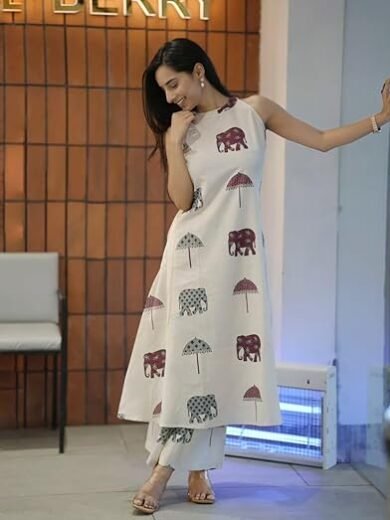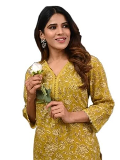 Cotton Straight Kurta for Womens Pritned Calf Length Girls Kurti Casual Wear Dress