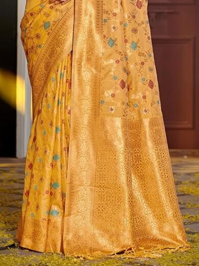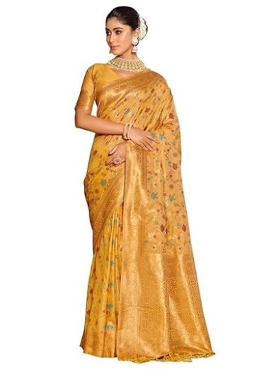 Banarasi Silk Saree with Golden Zari Floral Weaving | Soft Lightweight Traditional Saree for Women | Perfect for Festive Occasions, Gifting & Celebrations