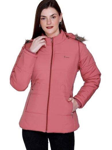 Women's Nylon Jacket Water Proof Full-Sleeved Winter Jacket with Hood For Minus Degree