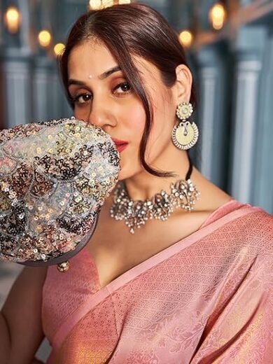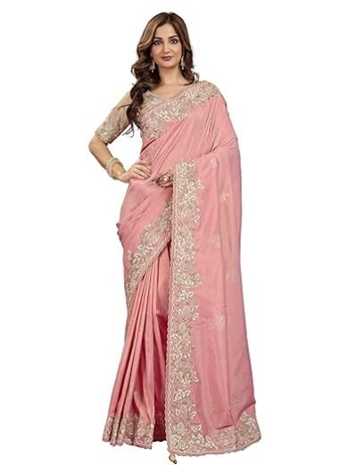 Women's Jacquard Silk Embroidery Sequin Work Saree with Unstitch Blouse Piece